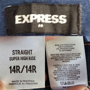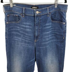 Express Straight Super High Rise Jeans 14R Medium Wash Stretch Whiskered Faded