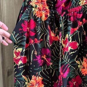 Express Strapless Jumpsuit Tropical Palm Floral hibiscus