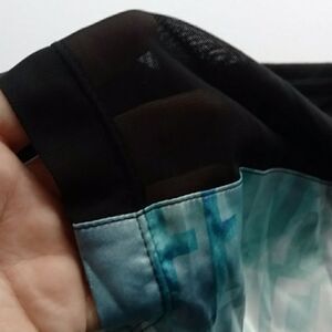 Express sleeveless summer top that has a black back (60% cotton, 40% modal) & shoulder/yoke (100% polyester...This part is sheer.) & then a design on the front (95% polyester, 5% spandex) of a woman's face with a summer saying (text) over the top. "Feel the summer sun waves crashing in sandy beaches..." The front is a collage of white, greens & blues. Size - Medium. This top is in great shape & perfect for summer!