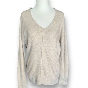 Express Sweater Heather Oatmeal Beige V-Neck Neutral Knit Pullover Wool Blend XS