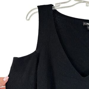 Express Sweater Cold Shoulder Black Ruffle Sleeves Ribbed V Neck Womens Size L