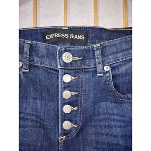Cropped legging jeans from Express. Size 0. Button fly. Frayed hem. High waist. 75% cotton, 24% polyester, 1% spandex. Machine washable. Made in Indonesia. Excellent condition. Nonsmoking home.