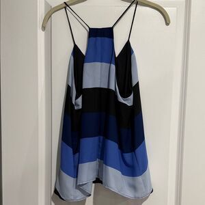 Chic camisole with bold blue and black stripes. Perfect for versatile styling.