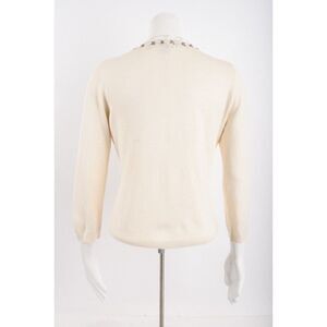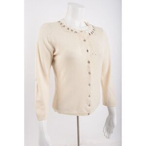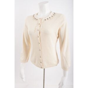 Express Womens Cardigan Sweater L Ivory Beaded Sequin silk Cashmere Vintage Y2K