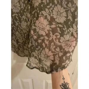 Express Women's Floral Blouse Gray Collared Short Sleeve Size Large