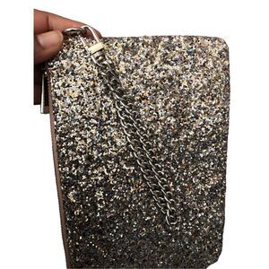 Preowned excellent used condition Clutch Glitter encrusted Zipper closure Chunky chain wristlet Satin lined Interior pocket