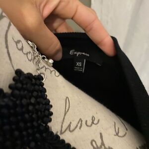 This black sweater dress is in good but used condition. No rips or smells. It has pockets on the side of dress. Can dress it up or down.