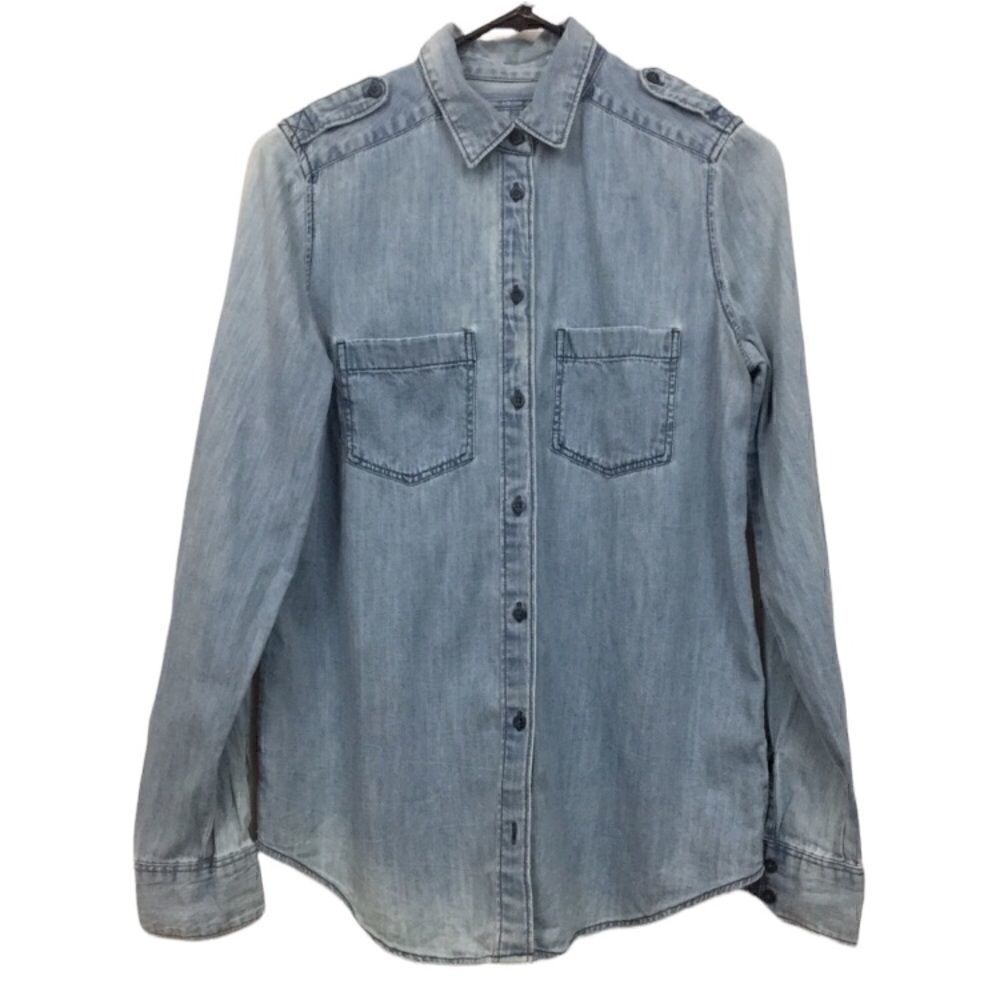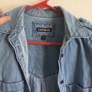 Super cute denim button up from express. Used but in perfect condition. Soft and comfy, no flaws. Women’s size extra small