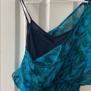 Teal and green dress with slip
