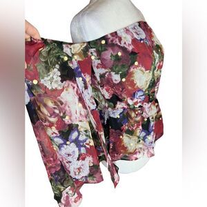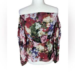 Express floral off shoulder volume sleeve shirt size Small