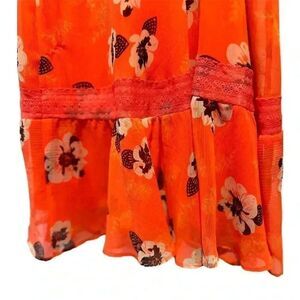 Beautiful floral one shoulder with strap midi dress. Has full semi sheer overlay. Fully lined. So feminine with flowy skirt. Has hidden zipper. Bright orange with flowers. Perfect sunmer dress