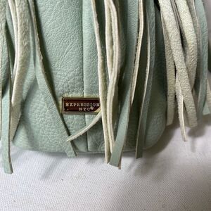 Expression NYC faux leather drawstring fringes mint green crossbody bag pre owned in good used condition no tear signs of wear on the lining see pictures any question please message.