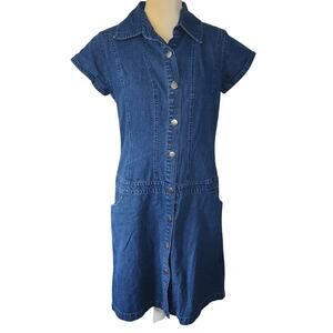 Expressions 90s Blue Denim Button-Up Short Sleeved Pockets Dress Size Medium