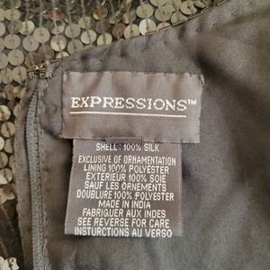 Expressions Black Sequins 100% Silk Sleeveless Dress Size 10