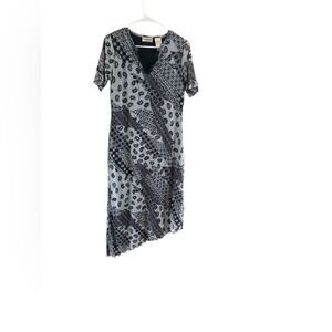 Expressions Black and Gray Diagonal Hem Dress 90s