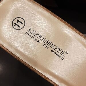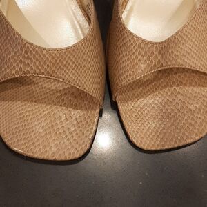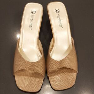 Expressions Footwear For Women Cream/ Tan Faux Snakeskin Slide on Heels