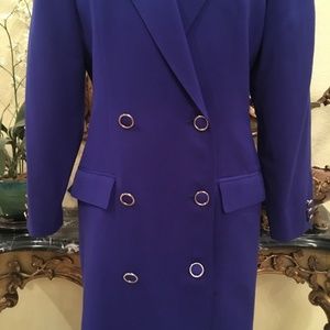 Stunning blue double breasted lapel coat dress circa 1980s by Expressions New York.