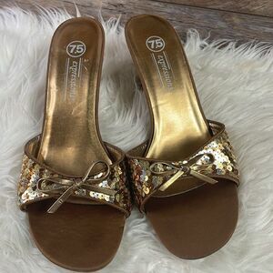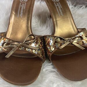 Expressions Sequined Slide In Heels, Size 7.5, Goldtone and Bronzetone Sequins