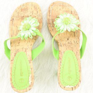 Expressions Size 6 Green Flip Flop Sandals Flower