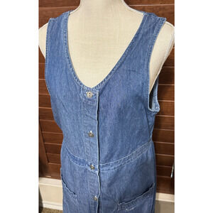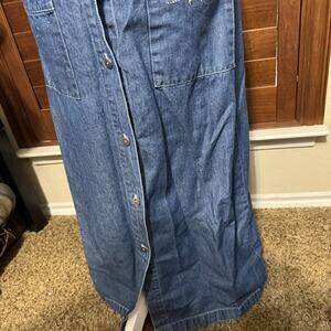 Expressions Womens Jumper Denim Maxi Dress sz 12 button front Pockets Prairie