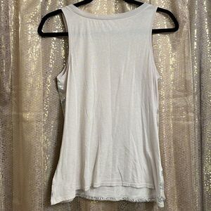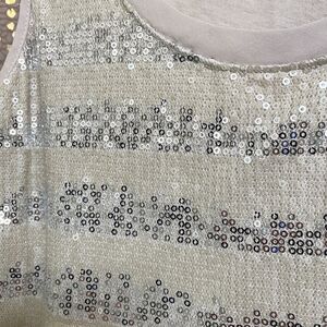 Excellent condition! Like new! Pretty Express tanktop with silver and matte ivory colored sequins across the front. Mesh overlay on the front, soft liner under the tanktop. Chiffon neckline. No flaws. Smoke and pet free home, size S, decent amount of stretch.