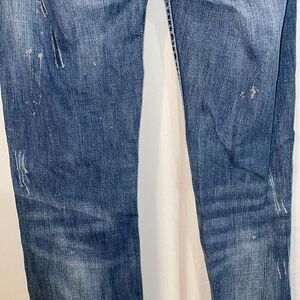 Jeans, size 2, with intentional silver paint, glitter and scratches, in fine condition.
