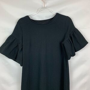 Express knit bell sleeve black dress with textured fabric. Brand and size tag are missing. Excellent used condition. Size is according to measurements.