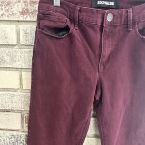Stylish burgundy skinny jeans from Express. Perfect for any occasion.