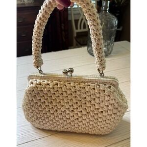 Expressly For Simon Vintage 1960s Raffia Straw Purse W/ Handle & Kiss Close Handbag. Smoke free.