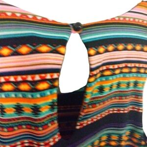 Expresso Aztec Pattern Multicolored Tank Elastic Gathered Waist Capri Romper XL