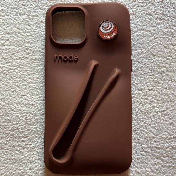 Sleek RHODE phone case in dark chocolate brown. Offers strong protection and ergonomic grip. Stylish and functional design.