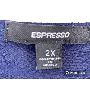 Expresso Womens Blouse 2X Navy Tan Short Sleeve