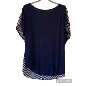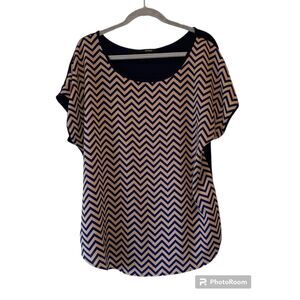 Expresso Womens Blouse 1X Navy Tan Short Sleeve Pre-Owned- Excellent Condition-No Flaws WS2-16