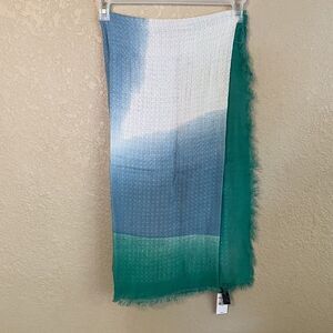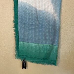 BNWT Express oversize scarf, blue/teal/white. Never worn, soft material. 100% polyester.