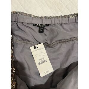 New. Gunmetal tiered skirt, sequins. Fully lined. Size Medium. From express. Reg price $79.99. (LA) approx measurements across waist 15.5” length 15”