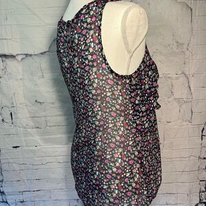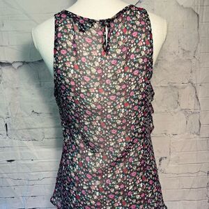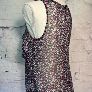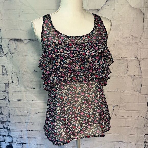 Fresh and stylish Express top for Women. So delicious Floral Ruffles Sheer Metallic purple Blue. Size S . Length 26" and chest 17"
