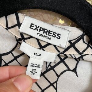 Express white/black/ivory floral print portifino button down blouse, XS slim