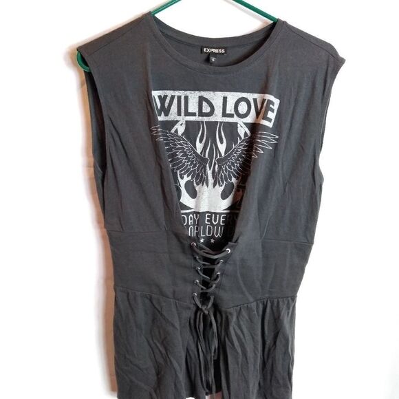 Gray lace up top, wild love all day every day. Sleeveless, chest 20" length 25". GG