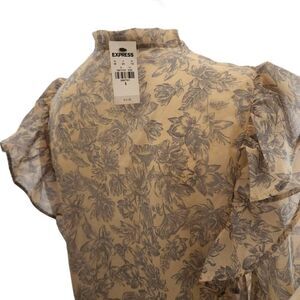 Express women's small blue floral Victorian ruffle long sleeve NWT blouse