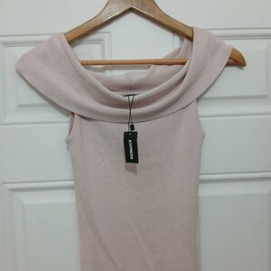 Express womens small off shoulder mauve dusty pink fitted stretch top
