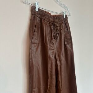 Exquise Brenna Faux Leather Wide-Leg Pants in Brown