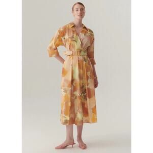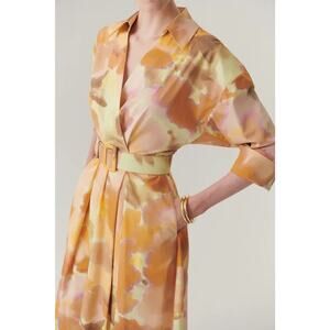 Exquise Brooklyn Dress Watercolor Belted Cotton Yellow Orange Pastels