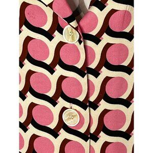Exquise Retro Pattern Button-Up Collared Shirt Pink Black Geometric Design XL