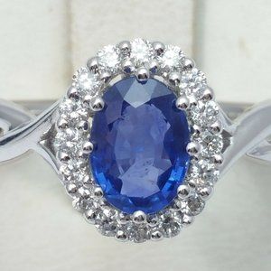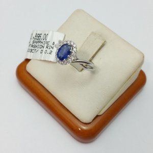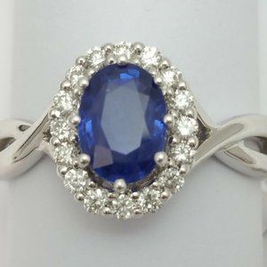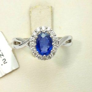 Exquisite 14K Karat Solid White Gold Ladies Ring With Diamonds & Sapphire