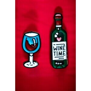 Exquisite 2-piece Wine Bottle and Glass Enamel Lapel Pin Set