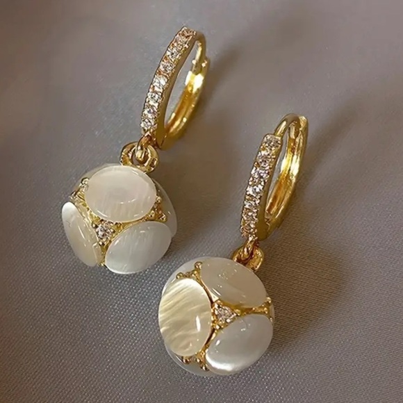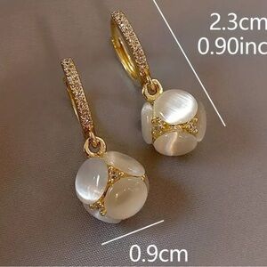 Exquisite Ball Design Moonstone Inlaid Dangle Earrings Elegant Copper Jewelry