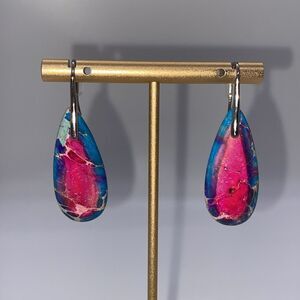 ✨🆕✨💘Exquisite BoHo Emperor Stone Blue & Pink S925 Plated Gems Dangle Earrings✨