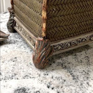 This box is Exquisite. It looks as if it has copper leaves and woven top and with wooden piece underneath the cabbage pool but it’s all porcelain. Absolutely fantastic piece but it does have one tiny flaw, the cabbage has a tiny part chipped off, see photo. 🌸 No trades, and I only do business inside the Poshmark Community.☺️