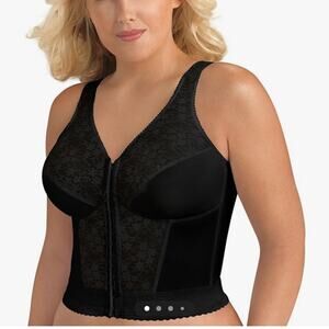 Exquisite Form 38D Black Lace Longline Bra Woman Full Figure Back Support