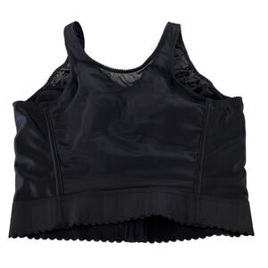 Black fully slimming longline bra with lace, posture support, front hook & eye closure